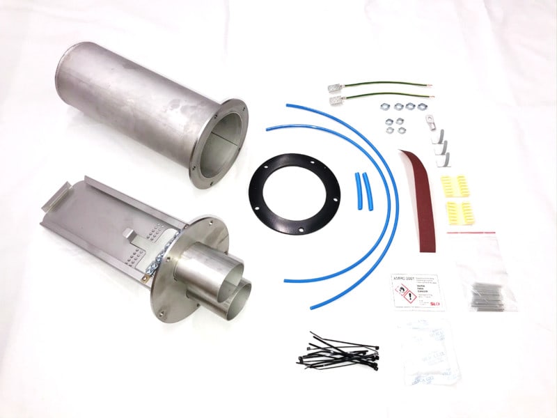 - Tuotteen kokonaispituus on 375mm, rungon halkaisija 114,3mm ja laipan halkaisija 154mm.