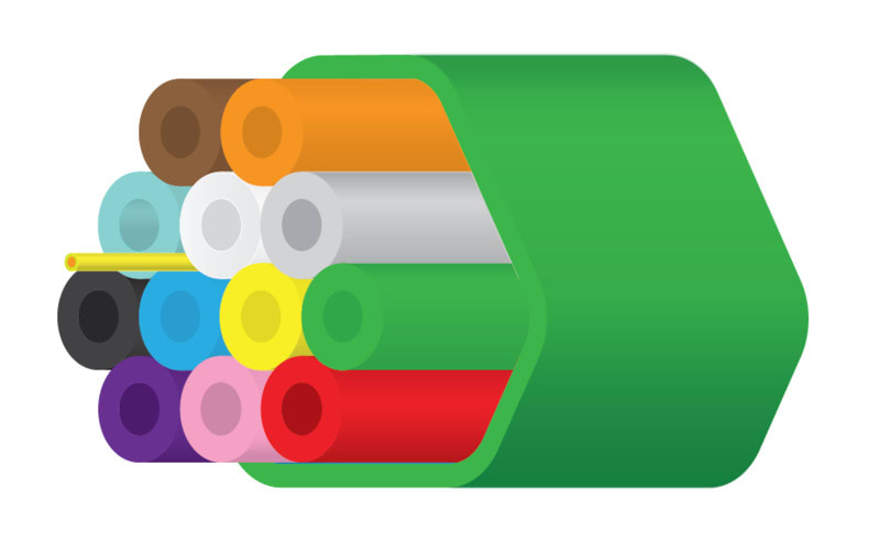 Suoraan maahan asennettava mikrokanavanippu 12 x 7/3,5mm. Nipun ulkohalkaisija: 30mm. Nipussa 12 kanavaa joiden ulkohalkaisijat 7mm, sisähalkaisijat 3,5mm. Kanavien värit sininen, valkoinen, keltainen, vihreä, harmaa, oranssi, ruskea, turkoosi, musta, violetti, vaaleanpunainen ja punainen. Nipun päällyvaippa vihreä.