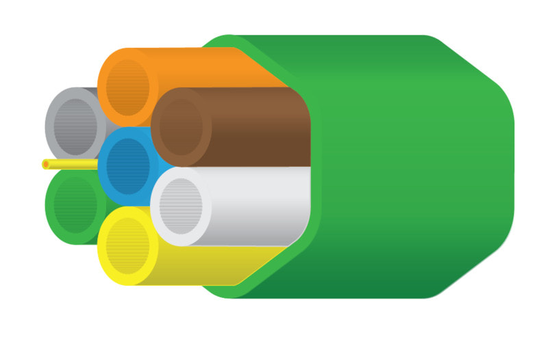 Suoraan maahan asennettava mikrokanavanippu 7 x 14/10mm. Nipun ulkohalkaisija: 44mm. Nipussa seitsemän kanavaa joiden ulkohalkaisijat 14mm, sisähalkaisijat 10mm. Kanavien värit sininen, valkoinen, keltainen, vihreä, harmaa, oranssi ja ruskea. Nipun päällyvaippa vihreä.