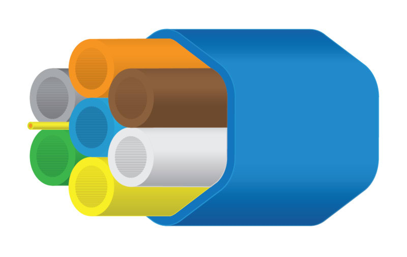 Suoraan maahan asennettava mikrokanavanippu 7 x 14/10mm. Nipun ulkohalkaisija: 44mm. Nipussa seitsemän kanavaa joiden ulkohalkaisijat 14mm, sisähalkaisijat 10mm. Kanavien värit sininen, valkoinen, keltainen, vihreä, harmaa, oranssi ja ruskea. Nipun päällyvaippa sininen.