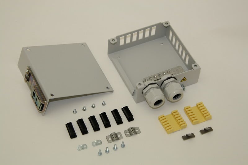 Päätekotelo NC-112 SC-D DIN-kiskokiinnikkeellä. Kiinnitetään DIN-kiskoon kestävällä metallisella DIN-pikakiinnikkeellä.