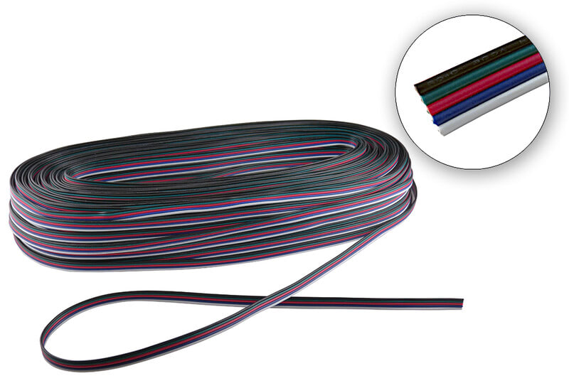 5-johtiminen lattakaapeli jolla RGB ja RGBW ledituotteiden kytkentä sujuu helposti