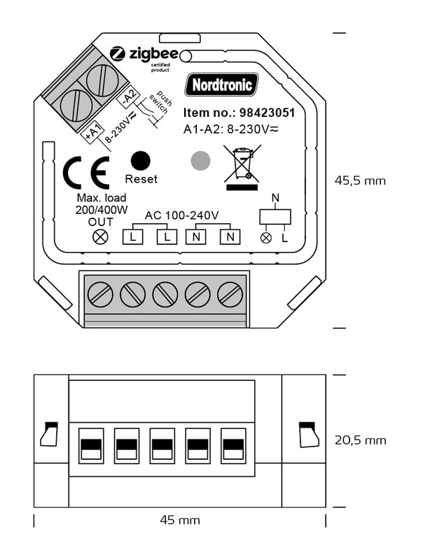 NORDTRONIC - Ohjausyksikkö - Box rele ZIGBEE 400W 100-240W