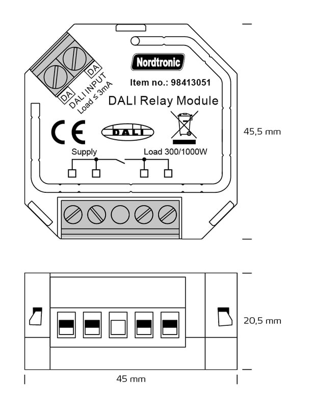- Kompakti relemoduuli päälle / pois päältä tavallisille kuormille Dalin kautta