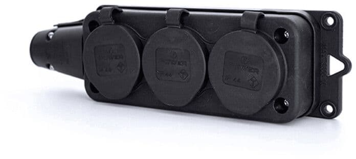 Jatkopistorasia 3-osainen suojakansilla. Jatkopistorasian päässä on kaapelille kalvoläpivienti. Jatkopistorasiassa on kaivot 45° kulmassa. Jatkopistorasiassa on ripustuslenkki jolla se saadaan ripustettua vaikka vaijeriin tai koukkuun seinälle. Jatkopistorasia voidaan myös kiinnittää ruuveilla kiinni alustaan. Kotelointiluokka IP44.