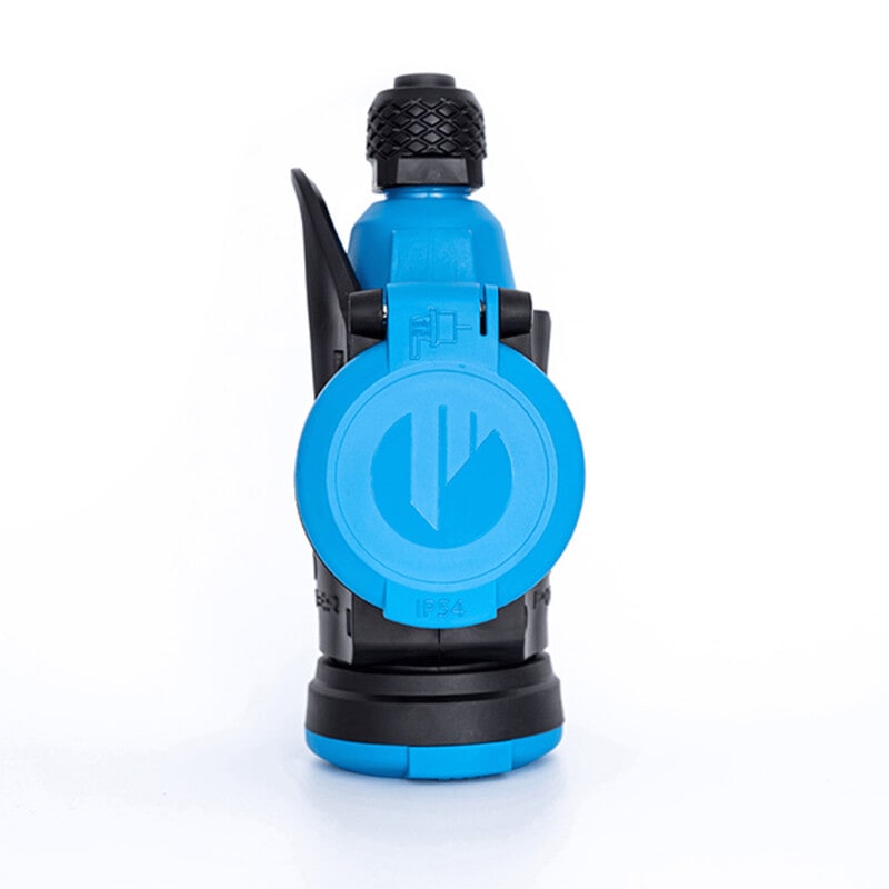 Jatkopistorasia 3-osainen jousitetuilla saranoiduilla kansilla. Kansia voidaan kääntää 360 astetta roiskesuojauksen maksimoimiseksi. Jatkopistorasian päässä on holkkitiivisteen tapainen läpivienti joka samalla toimii vedonpoistimena.