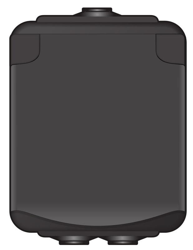 Pinta-asennettava 1-osainen maadoitettu pistorasia turvasuluin. Kotelointiluokka IP44. Pistorasiassa on ruuviliittimet. Liittimet ovat hyväksytty sekä ML että MK johtimille. Pistorasiassa on kalvoläpiviennit kaapeleille ylhäällä ja alhaalla.