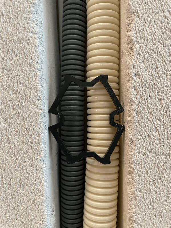 Kiinnikkeen rakenne pitää asennuksen tukevana ja siistinä ja tasoitusvalmiina. Kiinnike toimii kaikissa yleisissä seinämateriaaleissa, kuten tiilessä, betonissa ja kevytbetonissa, vahingoittamatta kaapelia tai seinää.