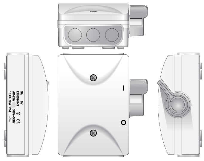 IEC 60947-2 standardin täyttävä koteloitu turvakytkin käytettäväksi myös kuormankytkimenä ja erottimena missä niin vaaditaan. Turvakytkin merkintä erillisenä tarrana joka kiinnitetään kanteen kun kytkintä käytetään turvakytkimenä. Kytkin soveltuu siis myös käytettäväksi kuormankytkimenä. Sivusta väännettävä lukittava vipu.
