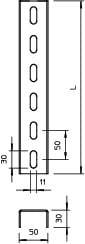 Kattokannake U määrämittaisina. Profiili 30 x 50 mm.