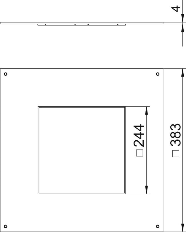 Valurasiaan UZD350 asennettava aukkokansi lattiarasialle, nimelliskoko9, asennusaukko 244x244mm, 383x383x4, St, FS