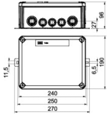 Palonkestävä jakorasia E90, 4x16 mm² + PE, 9xM25 7xM32, 270x190x95, PP,oranssi RAL 2003