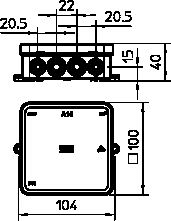 Suojausluokka IP55, nimellisjännite 400 V, nimellispoikkipinta 2,5 - mm², 14 aihiota kaapeleille, läpimitta 7-13 mm. Painokansi. Mitat: 100 x 100 x 40 mm Vapaat sisämitat: 90 x 90 x 35 mm. 10 rasiaa kohden 2 lävistyskärkeä. Kaapelit voidaan asentaa pohjan kautta suoraan seinän lävitse tai läpimenot voidaan merkitä seinään porausta varten.