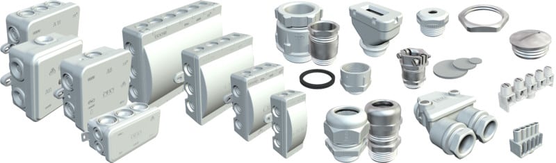 Jakorasiat on valmistettu kertamuovista, polypropeenista ja tiivisteet etyleenivinyyliasetaatista, EVA. Tämä muovi on pehmeää, siis helposti käsiteltävää. Näin johdot voidaan asentaa joko suoraan 9 x M25 7 x M32 tiivisteiden läpi tai tiivisteet voidaan leikata sopivista kohdista, jolloin saadaan johdoille tai putkille läivientiaukot. Lisäksi aukkojen läpi voidaan työntää tiivisteiden sijasta holkkitiivisteitä ja ruuvata ne kiinni vastamuttereilla. Jakorasiat voidaan kiinnittää 3,5x9,5 peltiruuveilla asennuspellin pohjassa oleviin reikiin. Vapaat sisämitat: 225 x 173 x 86 mm Kansi merkintäkentällä.