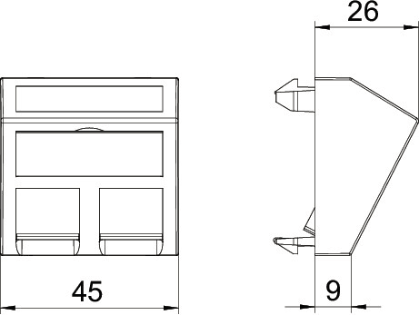Kanavadatarasia, 2xRJ45 R&M, vino, ei liittimiä, pölyluukuilla, PC, puhtaanvalkoinen; RAL 9010