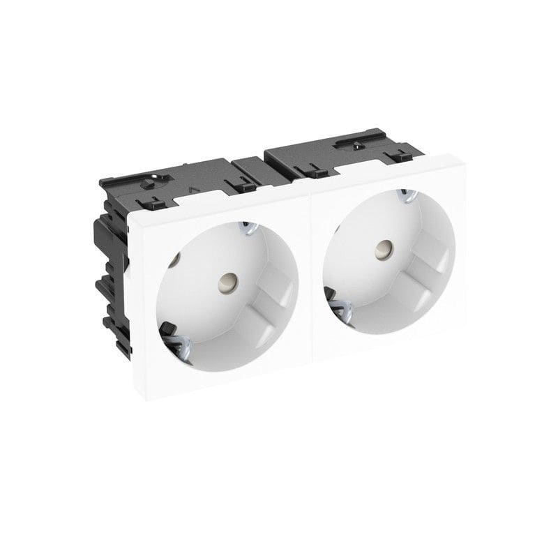 Kanavapistorasia 45, 2-os. 33°, ketjutettava, kosketussuojainen, 16 A, 250 V~, jousiliittimin, Voidaan asentaa Rapid 45 -kanaviin, johtokanaviin, pistorasiapylväisiin, lattiakanaviin, 250V, 10/16A, PC, puhtaanvalkoinen; RAL 9010, Vanha tuotenumero 6120482