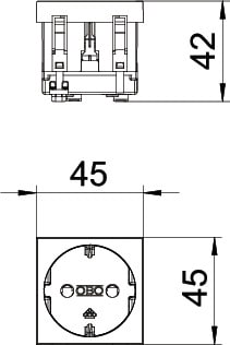 Kanavapistorasia 45, 1-os. 90°, kosketussuojainen, 16 A, 250 V~, jousiliittimin, Voidaan asentaa Rapid 45 -kanaviin, johtokanaviin,pistorasiapylväisiin ja lattiarasioihin, 250V, 10/16A, PC, puhtaanvalkoinen; RAL 9010