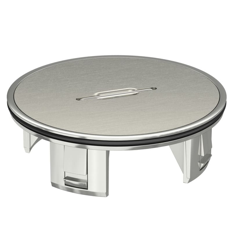 Kansi avauskahvalla lattiarasian läpiviennille. Märkäpuhdistettaville lattiarasioille.
