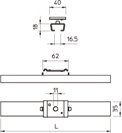 Keskikannatin 400mm lankahyllylle kiinnitysosalla. Haponkestävä teräs 4404 HST