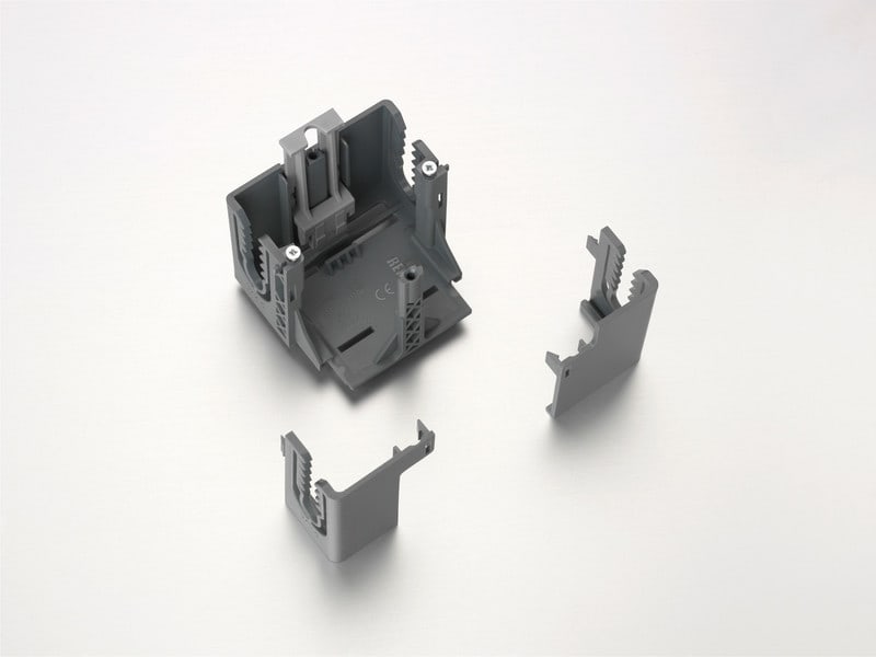1-osainen kojerasia SIGNA, sähkö- ja tietoverkkokalusteiden asennukseen SIGNA BASE johtokanaviin. Voidaan helposti asentaa myös kanavadatarasia. Asennus ilman työkaluja kääntösalvalla ja aikaa säästävällä kaapeleiden kiinnityksellä