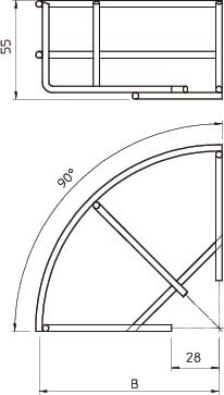 Kaari 90° vaakasuora lankahyllyille sivun korkeudella 55 mm