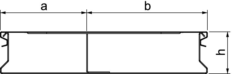 2-osainen lattiakanava valuasennukseen, valun vähimmäispaksuus kanavanpäällä on 35 mm, kuumasinkitty EN10147 ~ 20 µm, 2000x190x38, a=80,b=110, h=38, St, FS Valun sisään asennettava avattava lattiakanava