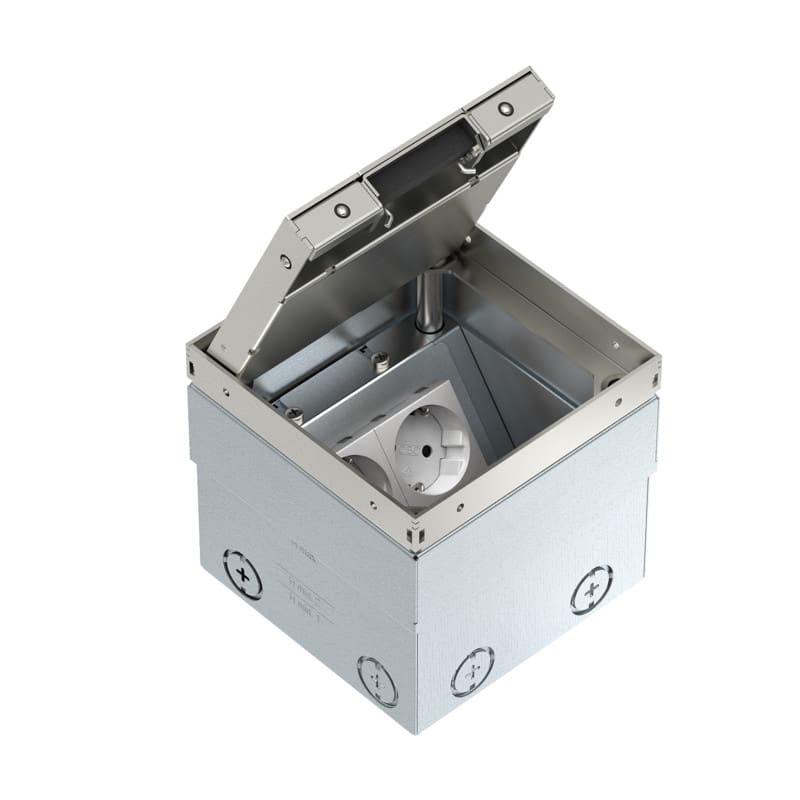 UDHOME2 Lattiarasioissa on säädettävä valurasia ja 2-os. suojakosketinpistorasia yhdessä paketissa. Lattiarasiaan voidaan asentaa myös RJ45 liitinlevy. Lattiarasia soveltuu kuivapuhdistettaviin lattioihin. Valurasiassa on 2 kpl M20/M25- putkiaihioita jokaisella sivulla. Lattiarasian kannessa on johtojen ulostuloaukko, joka voidaan lukita joko AUKI tai KIINNI-asentoon. Lattiarasian pistorasiat on asennettu 54˚ kulmaan joka mahdollistaa kaikkien yleisimpien pistotulppien mahtumisen suljetun kannen alle. Lattiarasian kaikissa teräsosissa on kytkentäpiste suojamaadoitukseen liittämiseksi. Ennen valua lattiarasia kannattaa suojata kauttaaltaan ympäriltä ettei valu estä myöhempää korkeuden säätöä.