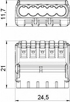 Rasialiitin on varustettu vapautusvivulla. Liitimiä on 2-, 3- tai 5-napaisina. Kytkentäkoko 0,2-2,5 mm2. Testattu standardin EN 60998 mukaan. Soveltuu sekä notkeille että jäykille johtimille. Jäykät johtimet voidaan kytkeä ilman vapautusvivun aukaisua. Kuorintapituus johtimelle 9 (+1mm). Testausaukko max. 2mm mittauspäälle liittimen päässä. Halogeenivapaa läpinäkyvä polykarbonaatti.Paloapidättävä VDE 0471/DIN 695 osan 2-1 mukaan, koestuslämpötila 850°C