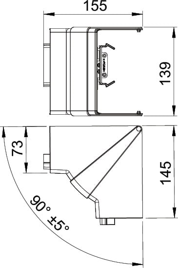 Sisäkulma, säädettävä 85-95°, 70x130mm, puhtaanvalkoinen; RAL 9010 Säädettävä 85-95° sisäkulma johtokanaville GK ja GKH