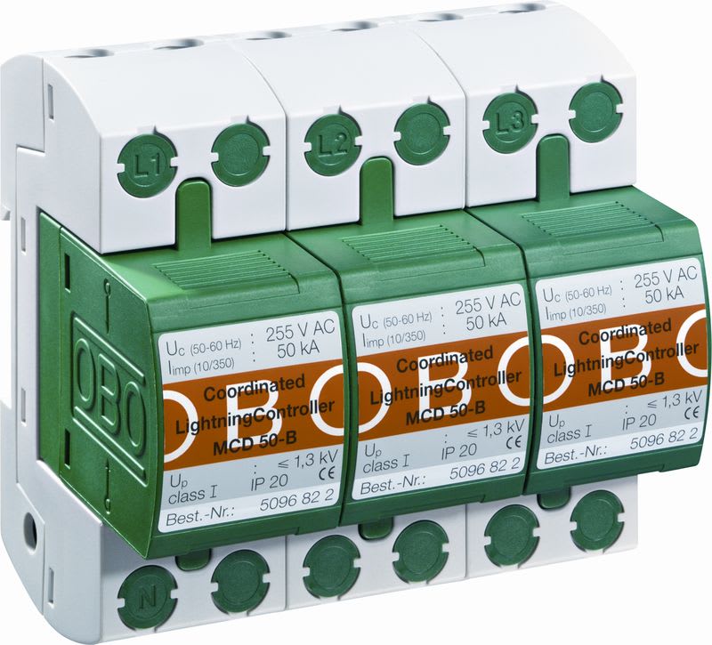 OBO BETTERMANN - Ylijännitesuoja kiinteistö - MCD50-B/3, T1, 3L+PEN