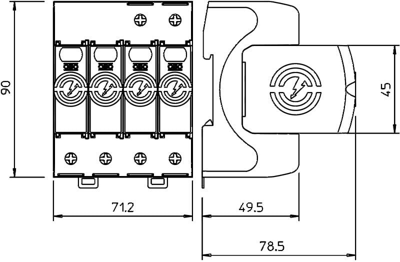 Koteloitu ylijännitesuoja TN-S ryhmä- ja jakokeskukseen