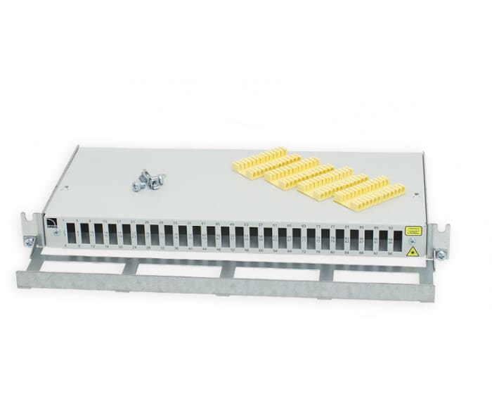 Päätepaneeli OP200T 24 LC QT +tuki Paneelin syvyys 200 mm, korkeus 1U. Maaliväri RAL 7035. Etulevyssä paikat 24xLC Quatro adapterille. Etulevyssä numerointi 1-96 sekä säteilyn varoituskolmiot. Paneelin takana isot taivutettavat läpiviennit kaapelin sisääntuonnille. Maadoitusruuvi paneelin takana. Sisältää räkkiasennustarvikkeet ja maadoitusruuvin.