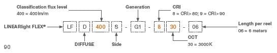 DIFFUSE Side White nauhoissa on useita eri värilämpötilavaihtoehtoja Ra>80 tai Ra≥90 värintoistolla. Nauhoja saatavana kahdessa eri valotehokkuusluokassa: