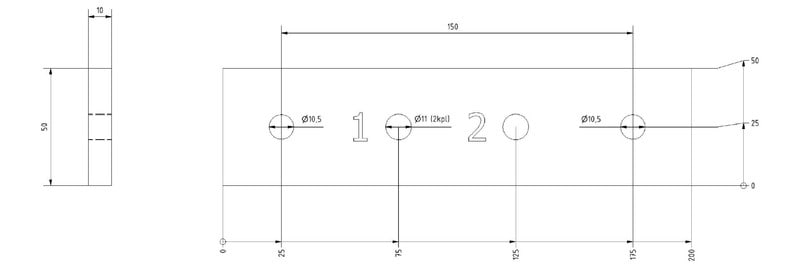 OUNEVA - 10x50x200, 2 reikää 11mm - AE06-1690 PE-kisko Cu