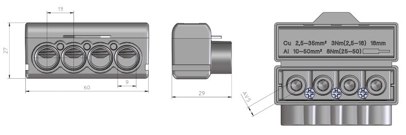 Haaroitusliitin Al 4x50 / Cu 4x35 + 3x2,5 mm² OPK - Pylväskaluste
