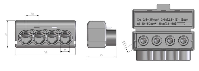 OUNEVA - Haaroitusliitin - Al 4x50 / Cu 4x35 Harmaa