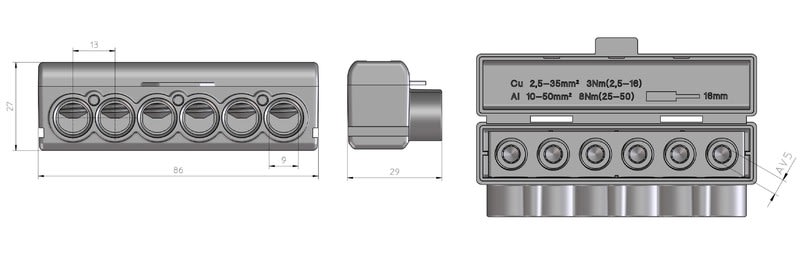 1-napainen OPK - pylväskaluste on tarkoitettu sähkölaitteiden ja kojeistojen haaroituskytkentöihin. Liittimessä on kuusi haaroitusjohdinaukkoa max. 50 mm² johtimille.