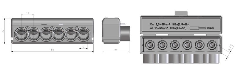Haaroitusliitin Al 6x50 / Cu 6x35 Sininen OPK - Pylväskaluste
