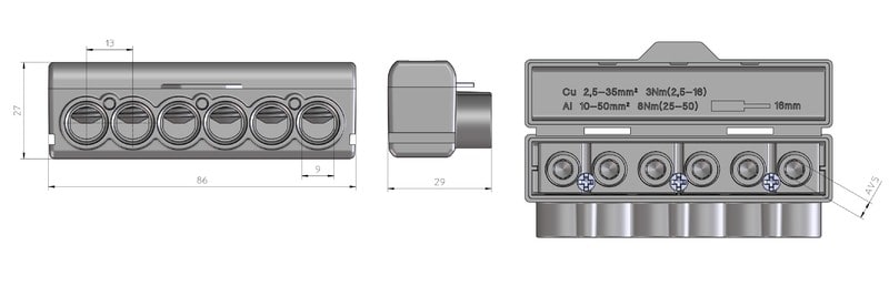 Haaroitusliitin Al 6x50 / Cu 6x35 + 3x2,5 mm² Sininen OPK - Pylväskaluste