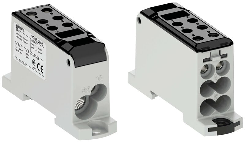 1-vaiheinen OJL-liitin on tarkoitettu sähkölaitteiden haaroituskytkentöihin. Liittimessä on 2 syöttöjohdinta ja 6 haaroitusjohdinaukkoa. Liitinrungon materiaalina on käytetty tinapinnoitettua alumiinia ja kotelo PA66 V0.