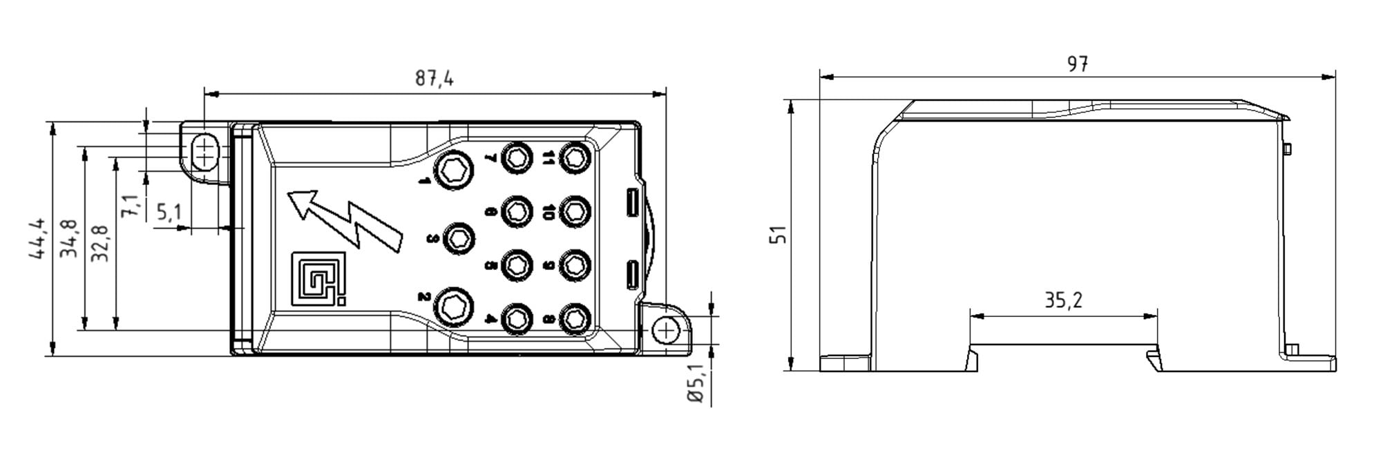 1-napainen OJL-liitin on tarkoitettu sähkölaitteiden haaroituskytkentöihin. Liittimessä 1 syöttöjohdin- ja 11 haaroitusjohdinaukkoa. Liitinrunko on tinapinnattua alumiinia.
