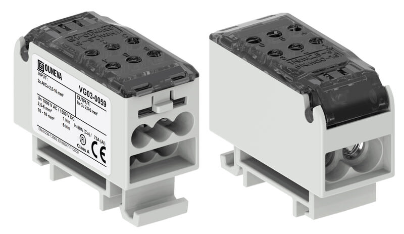 1-vaiheinen OJL-liitin on tarkoitettu sähkölaitteiden haaroituskytkentöihin. Liittimessä on 2 syöttöjohdinaukkoa ja 6 haaroitusjohdinaukkoa. Liitinrungon materiaalina on käytetty tinapinnoitettua alumiinia ja kotelo PA66 V0.