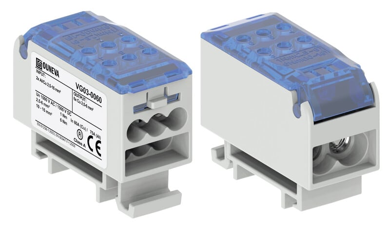 1-vaiheinen OJL-liitin on tarkoitettu sähkölaitteiden haaroituskytkentöihin. Liittimessä on 2 syöttöjohdinaukkoa ja 6 haaroitusjohdinaukkoa. Liitinrungon materiaalina on käytetty tinapinnoitettua alumiinia ja kotelo PA66 V0.