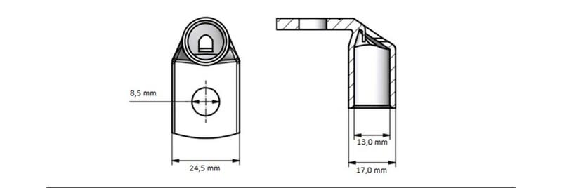 Cu-kulmakaapelikenkä 90ast. 70mm2 M8 Cu-kulmakaapelikengät