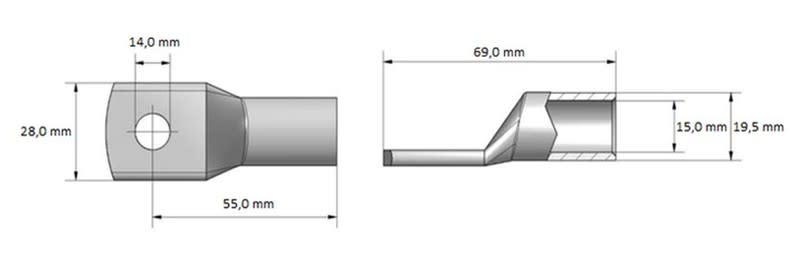 PKD Cu-putkikaapelikenkä 120mm2 D=14mm PKD-putkikaapelikengät