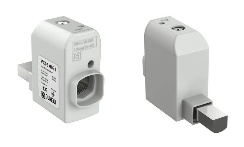 Kojeliittimiä käytetään Al- ja Cu- johtimien liittämiseen sähkökojeistoissa ja sähkölaitteissa. Liitin on valmistettu alumiinista ja pinnoitettu tinalla. Kosketussuoja on polyamidia. Malli on varustettu pyöristetyllä liitinosalla.