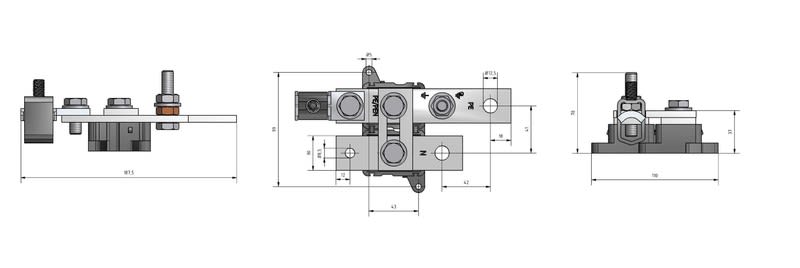 PEN-liitin, TN-C järjestelmä voidaan muuttaa TN-S järjestelmäksi poistamalla yhdyskisko. Liittimen kisko-osat on valmistettu kuparista ja pinnoitettu tinalla. Liitin asennetaan ruuvilla ja se soveltuu Al- ja Cu-kaapeleille.