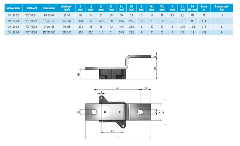 Eristetty liitoskisko 240-300mm2 EN-liitinkiskot