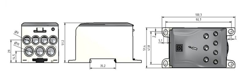 1-napainen OJL-liitin on tarkoitettu sähkölaitteiden haaroituskytkentöihin. Liittimessä 1 syöttöjohdin- ja 7 haaroitusjohdinaukkoa. Liitinrunko on tinapinnattua alumiinia. Tässä mallissa kannen sinetöintimahdollisuus.