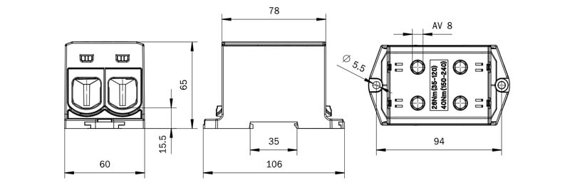 OUNEVA - OTL-haaroitusliitin 2x35-240mm - VC05-0037 Al/Cu har